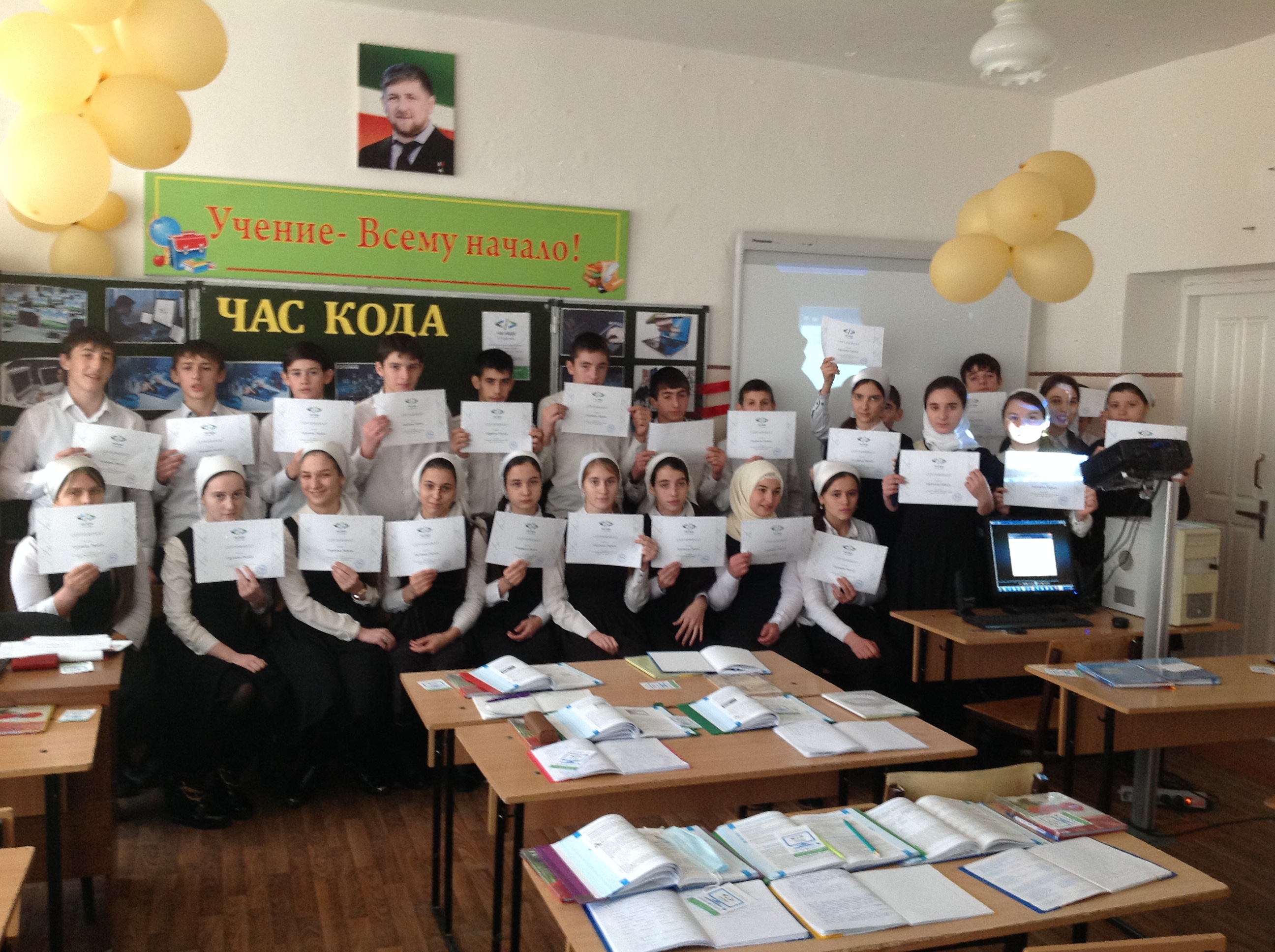 10.12.2015В рамках второй Всероссийской акции «Час кода» в МБОУ «СОШ № 3 с. Алхан-Кала Грозненского муниципального района Чеченской республики им. Сатиной Е. П.» 10 декабря 2015 года для учащихся 9-11 классов были проведен тематический урок «Час Кода».