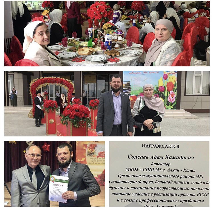 03.10.20193 октября в МБОУ "СОШ №2 с. Комсомольское" состоялось мероприятие посвященное Днюучителя, где были награждены почетными грамотами директор школы Солсаев А. Х. и Тарамова З. А. Поздравляем Вас, за достигнутые успехи в педагогической деятельности. Желаем дальнейших профессиональных успехов в работе! Дала т1аьхье беркате йойла шу!