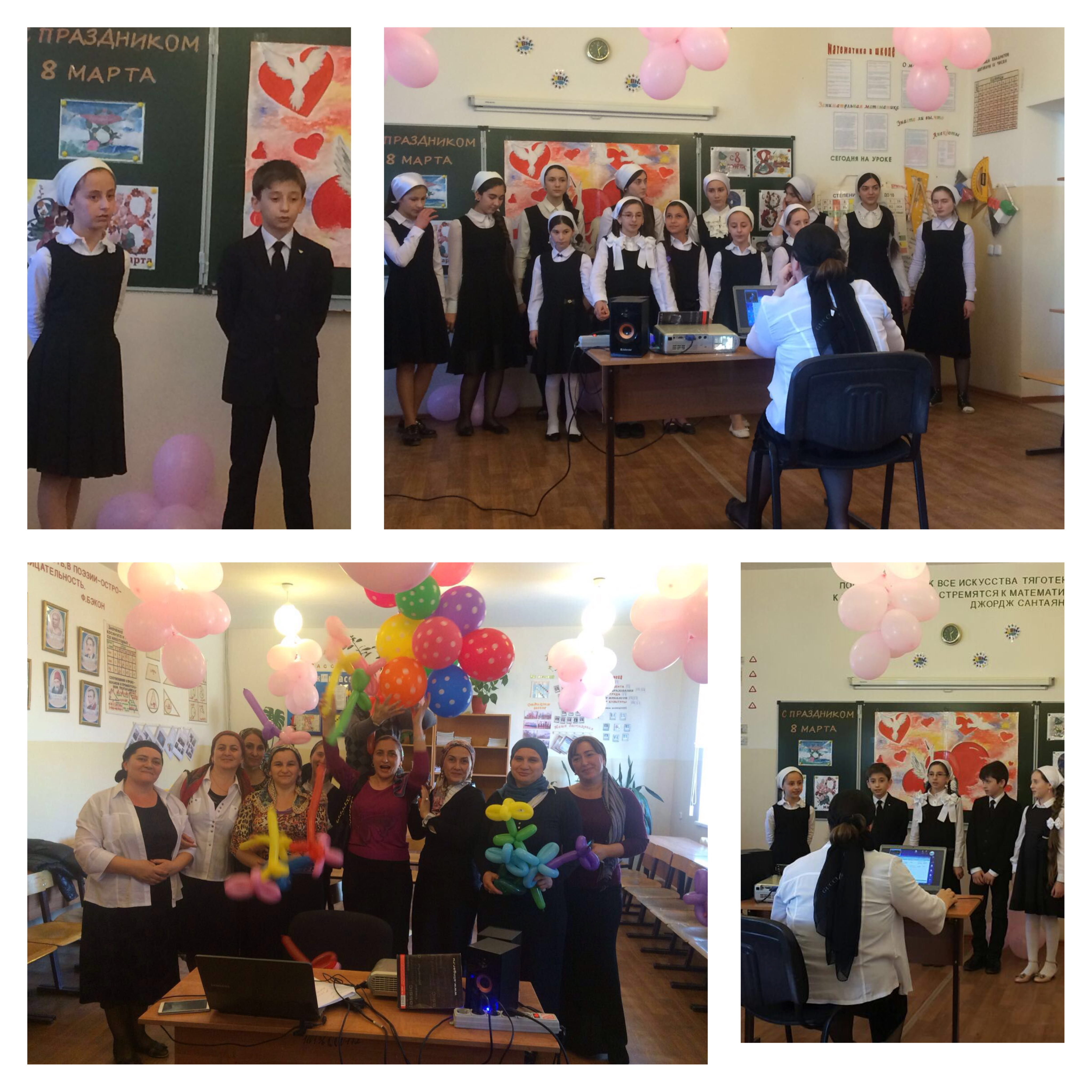Хорошо организованный праздник был проведен в школе 5 марта классным руководителем 8 а класса Чапаевой З.Х. В оформлении сцены к празднику были использованы красочные плакаты и разноцветные воздушные шары, цветы из шаров. Дети читали стихи, пели песни. Праздник очень понравился гостям и учителям.