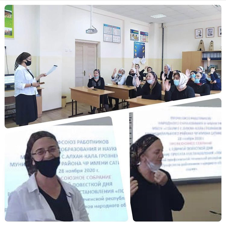 28.11.202028 ноября в МБОУ «СОШ N3 с.Алхан-Кала Грозненского района» прошло собрание с единой повесткой дня «ПОЛОЖЕНИЕ о первичной профсоюзной организации Чеченской республиканской организации Профсоюза работников народного образования и науки Российской Федерации»