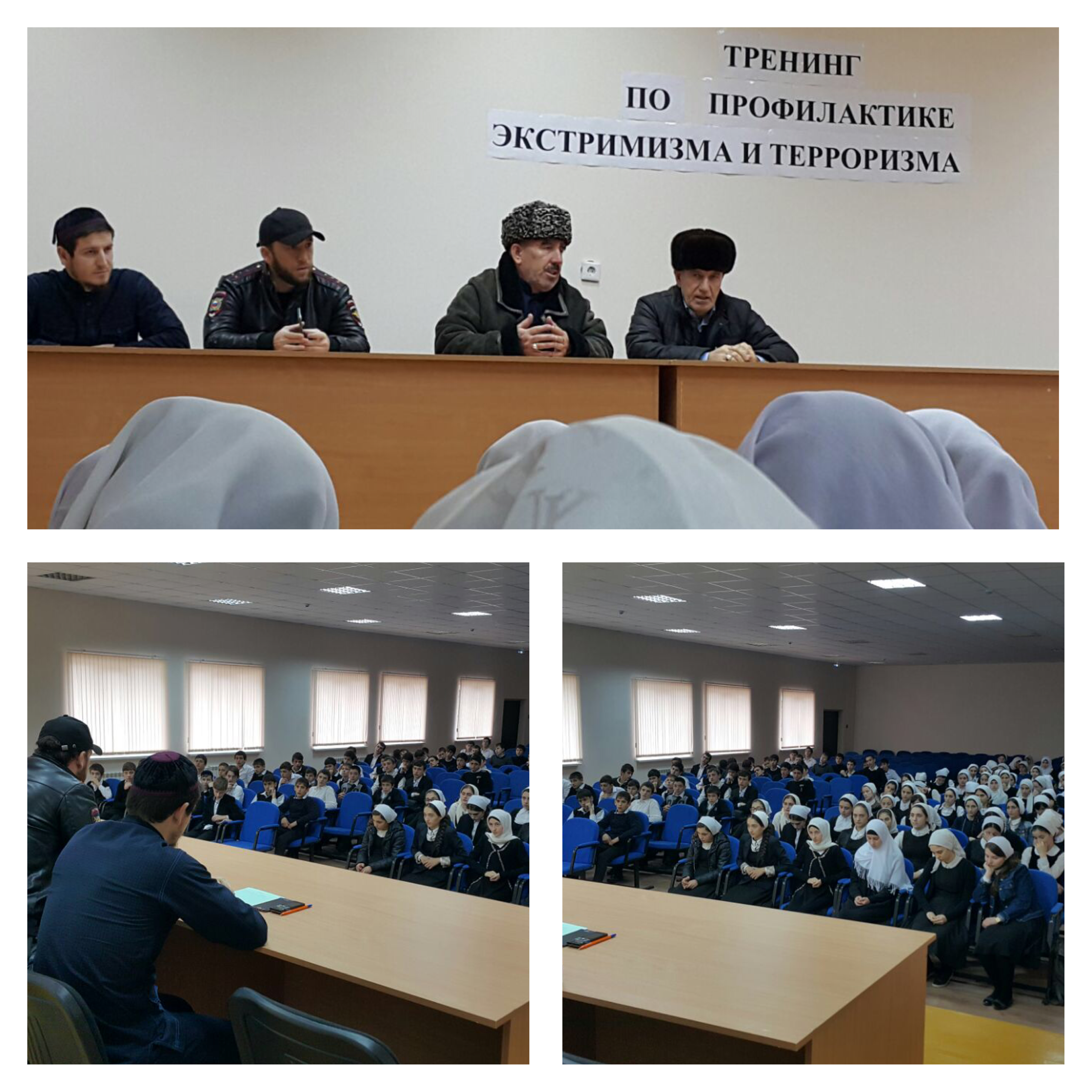 Глава Совета старейшин М. Ятаев рассказал ребятам о том зле, которое несут с собой ваххабиты и им подобные. Он призвал молодых людей хорошо учиться, уважать и чтить обычаи предков, познавать религию не с помощью социальных сетей, а обратившись к уважаемым ученым.«Ислам - это религия мира и созидания, а не террора и насилия. Действия этих людей противоречат всем канонам религии Аллах1а», - отметил X. Зайпулаев.Педагог по ДНВ И. Абдулаев рассказал молодым людям о вреде религиозного экстремизма для уммы мусульман, фитне хавариджей, заблуждениях радикальных течений в Исламе.