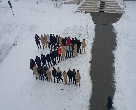 В знак уважения учащиеся 9 и 11 классов стали в форме латинской буквы "Z", что означает - "За Победу".