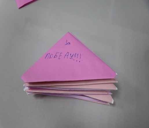 Дети сложили написанные письма в треугольники, как это делали солдаты во время Великой Отечественной войны.
