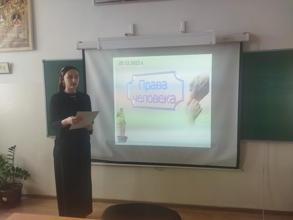 05.12.2022С целью формирования правовой культуры обучающихся, 5 декабря 2022 года в МБОУ "СОШ № 3 с. Алхан-Кала" в 5-10 классах был проведен Единый урок по правам человека, в рамках празднования Международного дня прав человека