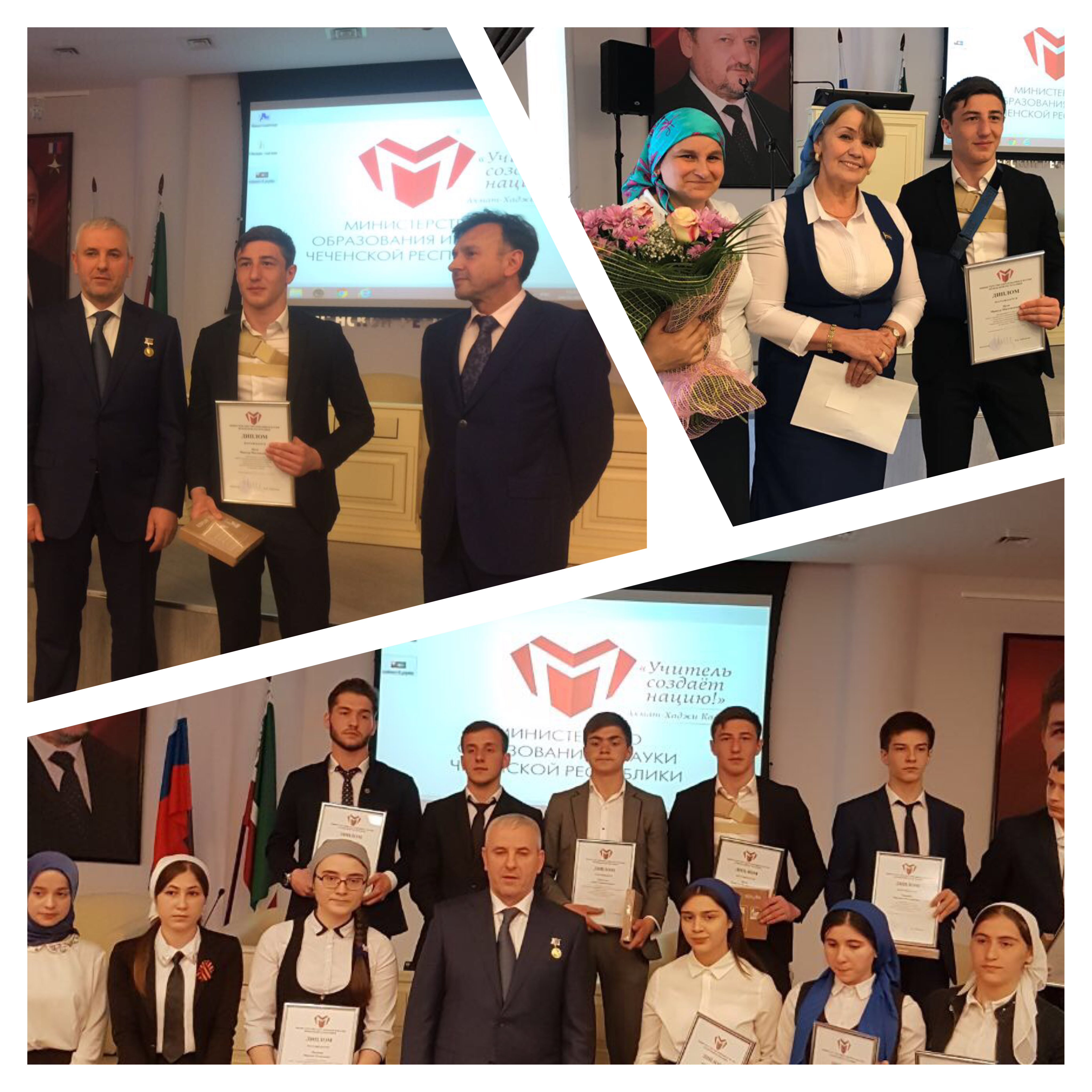 В числе победителей регионального этапа Всероссийской олимпиады школьников и наш ученик 10 а класса Цуев Мансур Магомедович, который занял первое место по предмету ОБЖ. В ходе мероприятия также были награждены учителя, подготовившие победителей олимпиады. Восемь учителей получили премию в размере 30000 рублей, среди них и наша учительница Витаева Камета Ризвановна. Дала т1аьхье беркате йойла!