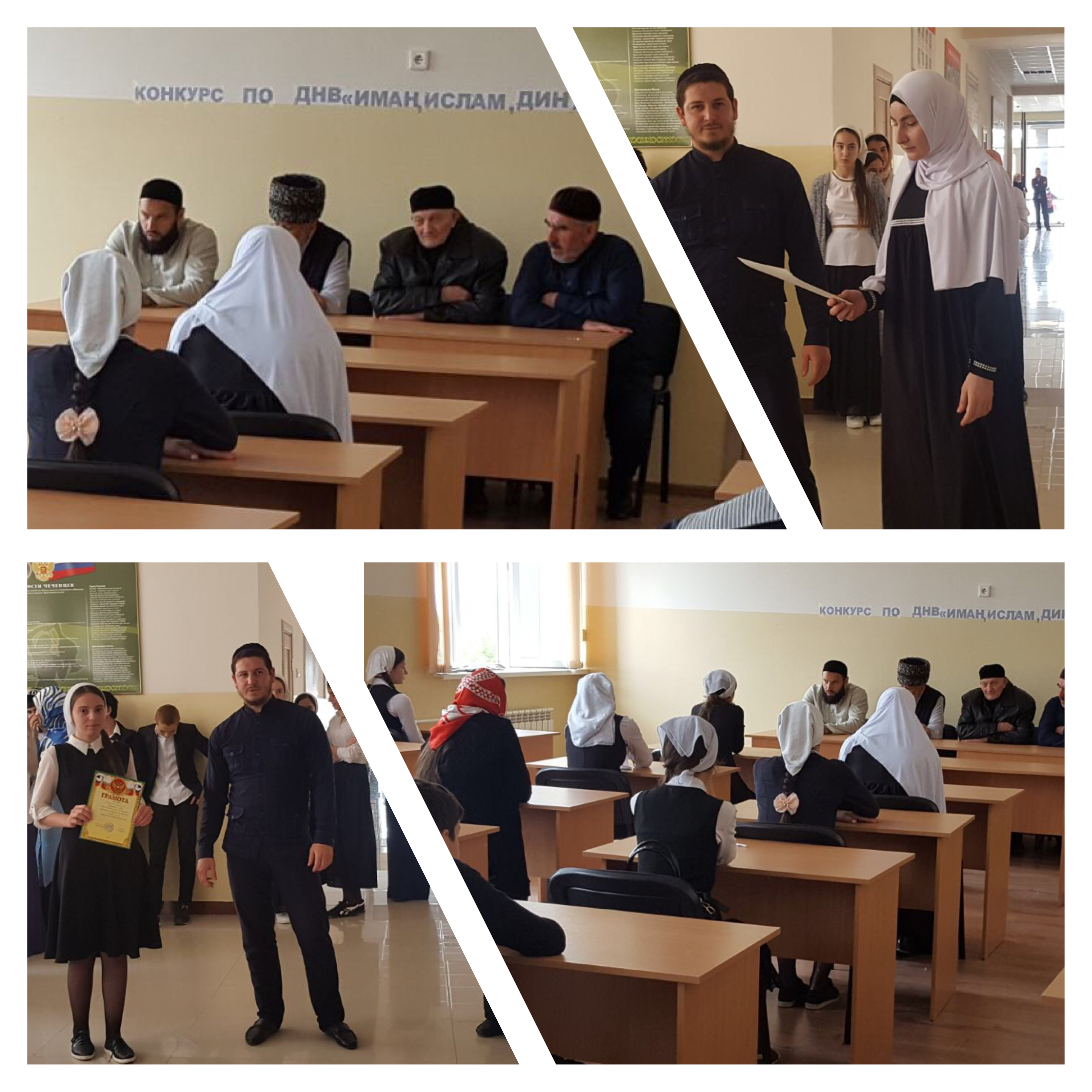 Участникам конкурса были предложены вопросы по чеченской этике, исламской религии, а также вопросы, связанные с наркоманией, алкоголизмом и ваххабизмом. Места по итогам конкурса были распределены следующим образом:1 место - Муслиева Хава 11а кл.2 место – Салмурзаева Хеда 8 б кл.3 место – Даргиева Амнат 8 в кл.В конце данного мероприятия всем победителям были вручены почетные грамоты и подарки. Подготовили и провели мероприятие педагог по ДНВ Абдулаев И.В., учитель этики Тарамова З.А.