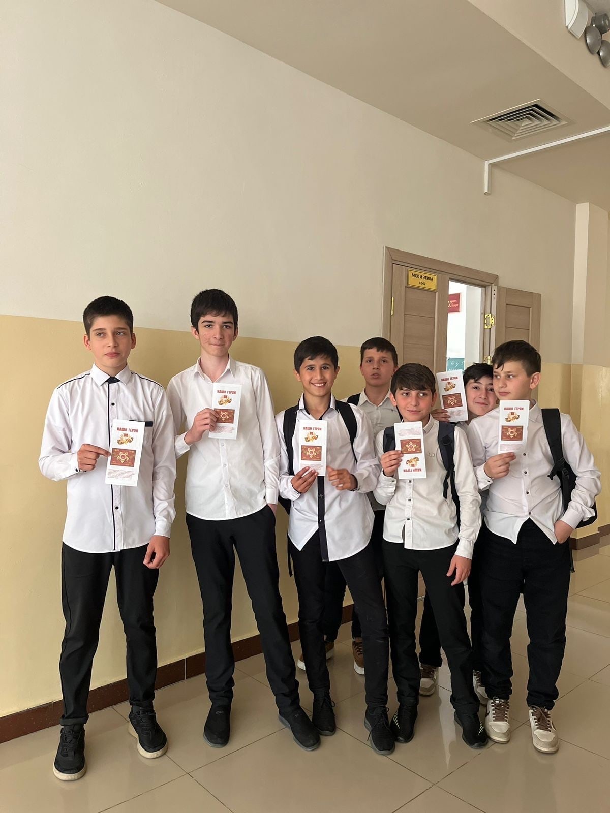 05.05.2023В рамках празднования 78-ой годовщины Победы в Великой Отечественной войне 1941-1945гг. В МБОУ СОШ 3 "с. Алхан-Кала" учителем истории и обществознания Алматовной Седой Идрисовной была проведена просветительская акция «Наши герои»В ходе мероприятия учащиеся 7-го класса раздавали буклеты, с информацией о героических подвигах, мужестве участников ВОВ #ГПН2023 #ГодпедагогаинаставникавЧР
