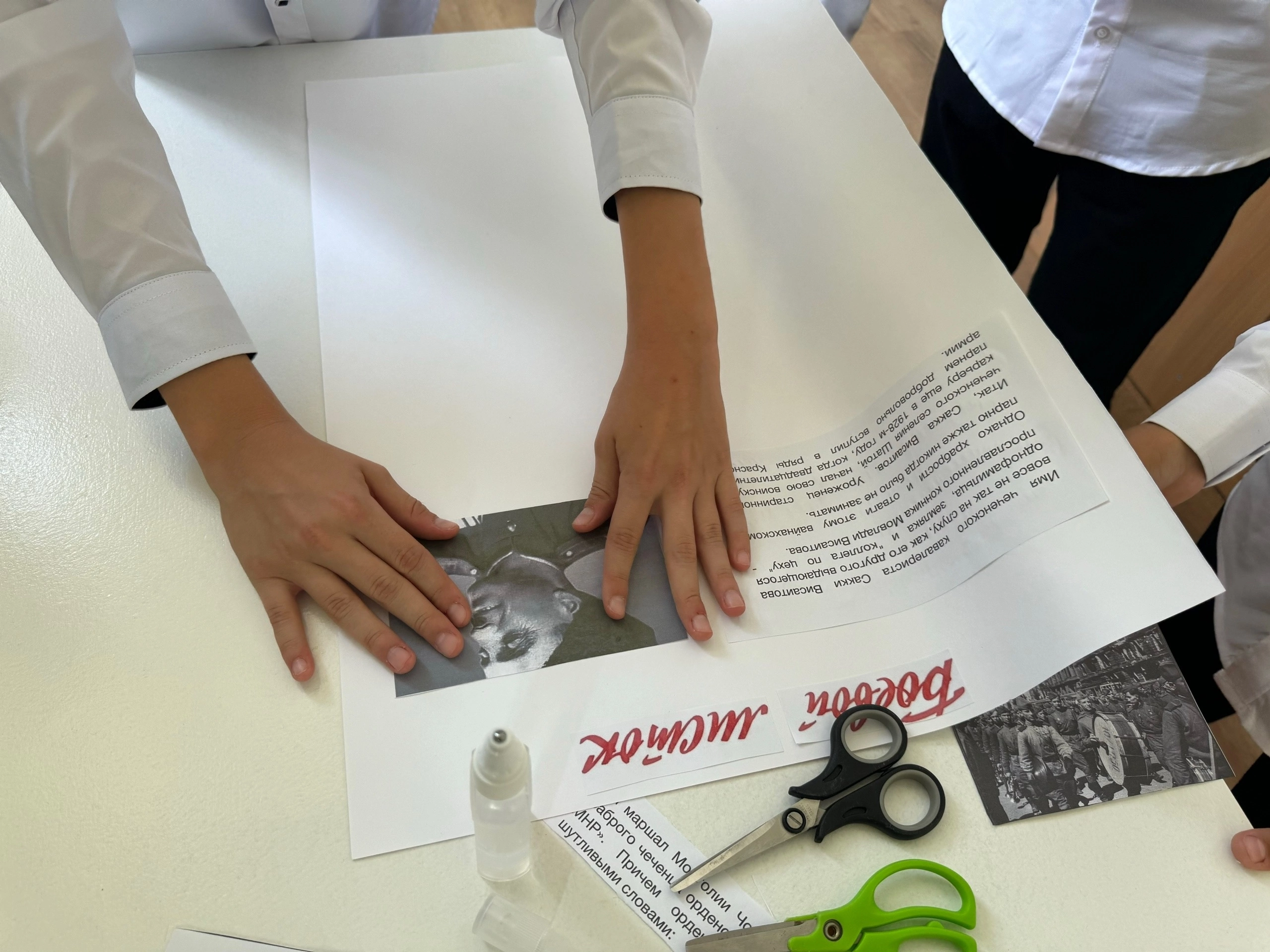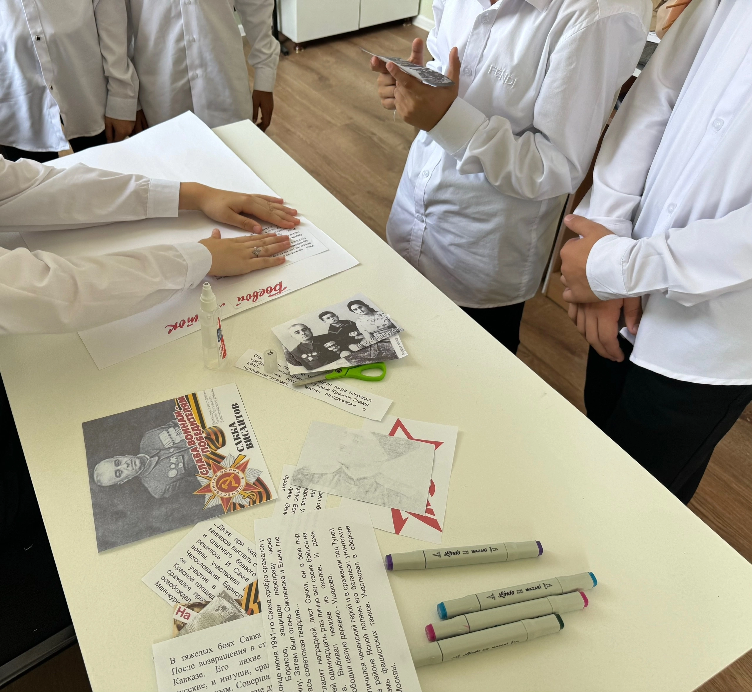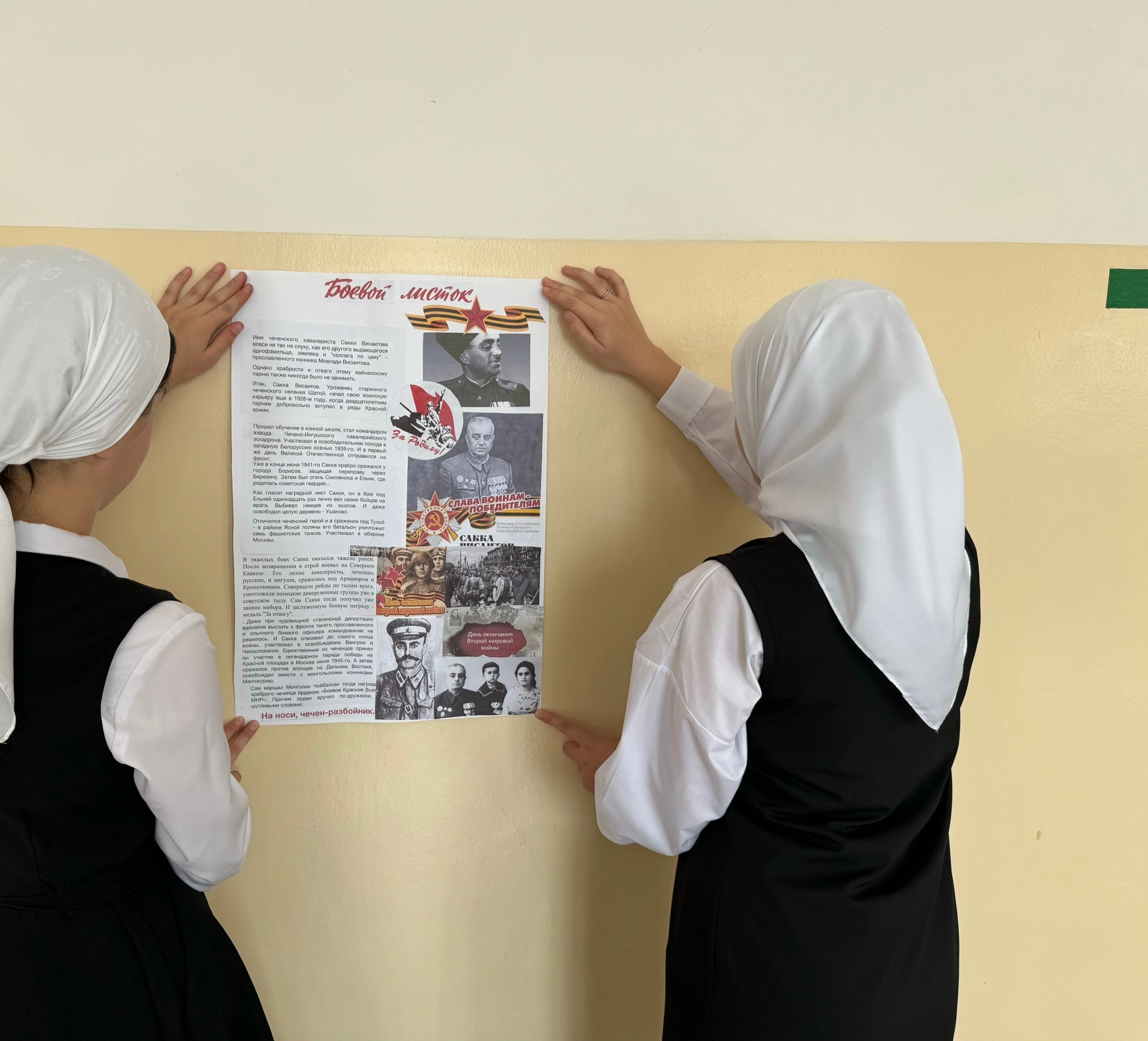 05.09.2024Акция "Помня о подвиге", приуроченная к окончанию Второй мировой войны. Советник директора по воспитанию и взаимодействию с детскими общественными объединениями с учениками 6 класса создали боевой листок, содержание которого наполнено биографией кавалериста, гвардии майора Сакка Висаитова, а также краткими историческими справками о второй мировой войне.