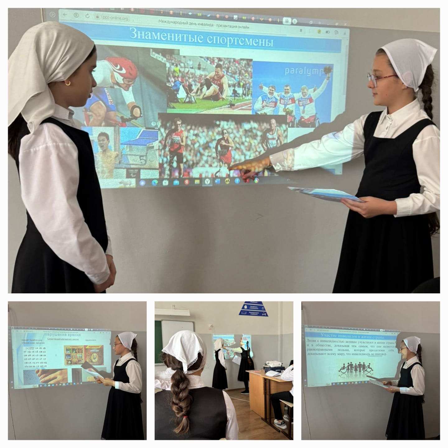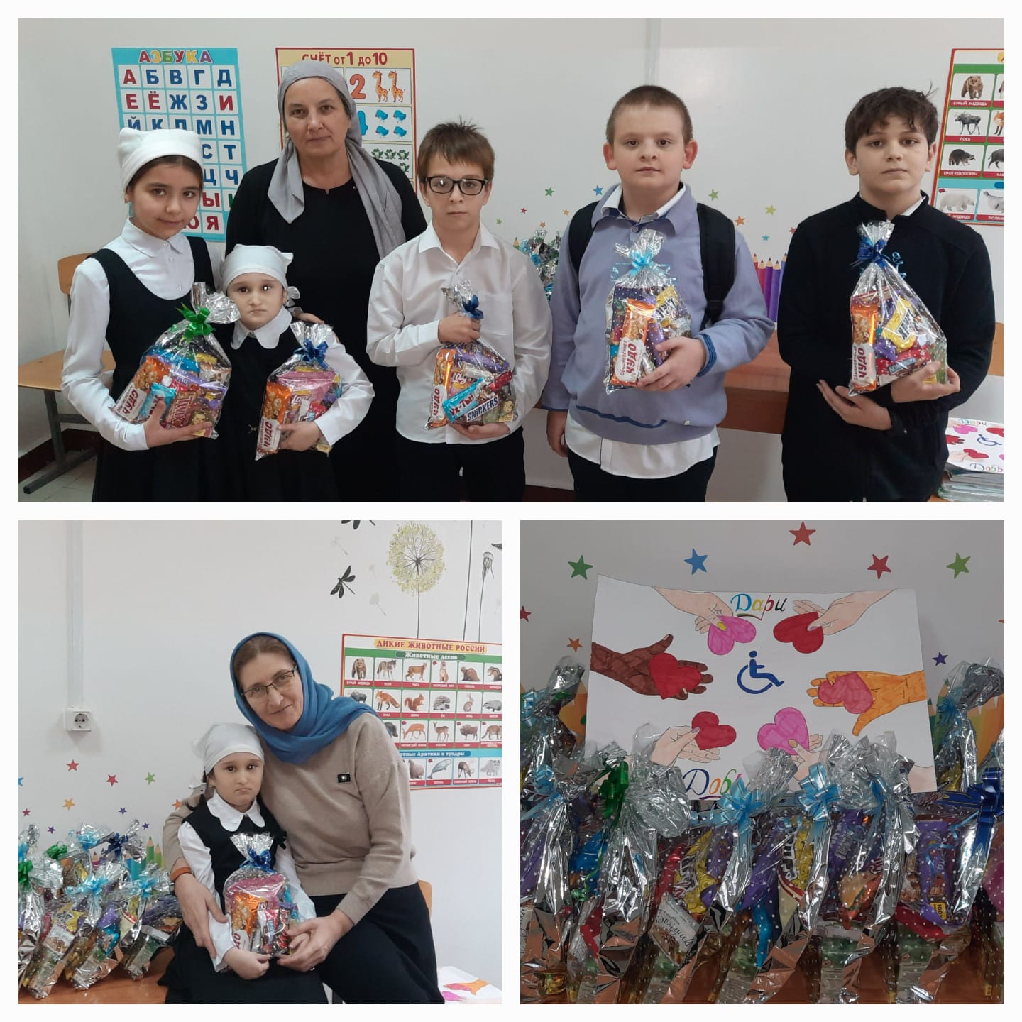 Благотворительная акция «Твори добро»; Беседа диалог «Дарите людям доброту»; Разработка и вручение буклетов «Разные возможности-равные права»; Единый классный час толерантности «Особые люди, особые возможности»; Конкурс рисунков «Жизнь всегда прекрасна»; «Идёт доброта по земле..» Конкурс детских рисунков; Общешкольное мероприятие, посвященное Международному Дню инвалидов.