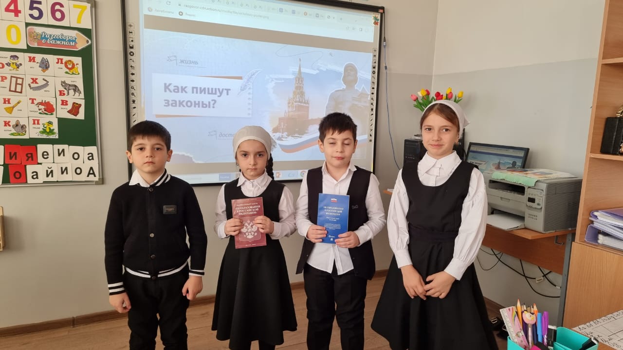 16.12.2024Сегодня на занятии "Разговоры о важном" обуучающиеся нашей школы углубились в тему "Как пишут законы?", приуроченную ко Дню Конституции. Начали с обсуждения важности соблюдения правил дорожного движения. Именно с таких повседневных правил зачастую начинается понимание законов. Почему они так важны? Постепенно перешли к более глобальному вопросу: как создаются законы нашей страны, и что делает Конституцию Российской Федерации главным законом?Школьники посмотрели несколько видеороликов, которые помогли осознать сложный процесс создания законов. Особое внимание привлекло видеообращение Сангаджи Андреевича Тарбаева, депутата Государственной Думы и Председателя Комитета по туризму и развитию туристической инфраструктуры. Оно дало ребятам уникальное представление о роли депутатов в законодательном процессе. После этого учащиеся погрузились в интерактивные задания, где каждый мог попробовать себя в роли законодателя. Для закрепления материала посмотрели видео "Как пишутся законы?", и оно окончательно помогло расставить все точки над "i". В завершение обсудили обязанности граждан, и как важная их часть — учеба — является обязанностью школьника. Разобрали школьные правила и пришли к выводу: знание Конституции необходимо каждому из нас. Оно помогает нам понимать, какие права и обязанности мы имеем и как мы можем влиять на общество. Эти знания — фундамент нашего гражданского самосознания. Ведь от понимания основ зависит будущее нашей жизни и страны!