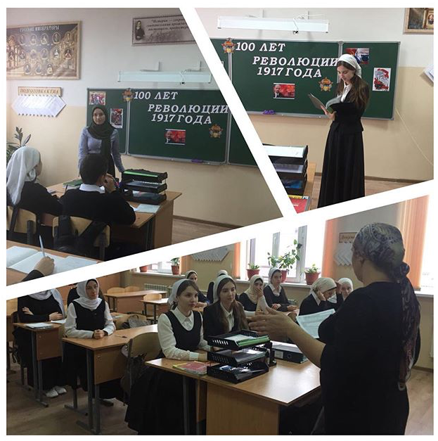 политики по-разному относятся к событиям 1917 года в России. Для одних — это национальная катастрофа, которая привела к Гражданской войне, установлению в России тоталитаризма; для других — величайшее прогрессивное событие в истории человечества, которое оказало огромное влияние на весь мир. Но при этом никто не отрицает, что Октябрьская революция стала самым значительным событием ХХ века. Именно с неё начинается новый этап истории человечества, и она навсегда остаётся памятной вехой в судьбе России и всего мира. Это часть нашей истории, про которую нельзя забывать.В период с 05-07.11.2017 года в МБОУ «СОШ №3 с. Алхан-Кала Грозненского муниципального района Чеченской Республики имени Сатиной Е.П.» к 100-летию Октябрьской революции прошли мероприятия по данной тематике. Заведующая библиотекой Чалбаева Х.Л., опираясь на архивные данные и исследования историков, рассказала ребятам о революционных событиях, о руководителе революционного движения.Кроме того, для участников мероприятия была оформлена тематическая книжная выставка. Благодаря подобранной литературе каждый имел возможность почувствовать атмосферу тех революционных дней и составить собственное мнение. Также ребята получили информационные буклеты и рекомендательный список литературы «Прошлое всегда с нами».Проведение подобных мероприятий даёт всем пищу для размышлений, заставляет задуматься об уроках прошлого, сохраняет и преумножает историческую память.