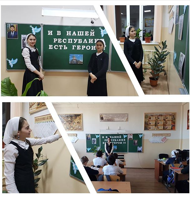 Он ушел из жизни 9 мая 2004 года, во время празднования парада победы. Часы из его кабинета до сих пор показывают момент взрыва, который унес жизнь лидера целой нации, омрачив красную дату календаря. Герой России посмертно. Позже высшая Государственная награда, указом Владимира Путина, была присвоена Главе Чеченской Республике Рамзану Ахматовичу Кадырову. Золотой звездой отмечены и заслуги его соратников, кто с первых дней плечом к плечу сражался вместе с против международного террора: Председатель парламента ЧР-Магомед Даудов, Алибек Делимханов ранее возглавлявший 141-й специальный моторизованный полк внутренних войск. А также Саид Магомед Какиев и Нурдин Усамов.13 декабря 2017 года на уроках истории, учащиеся говорили о героических подвигах соотечественников. Город Грозный является Городом воинской славы РФ и такие важные даты, события, приуроченные к данному празднику ребята обсудили с особым вдохновением. Так, в ходе видеопрезентации учащиеся в интересной форме познавательного фильма узнали истории о героях Чеченской Республики.Была затронута тема Героев Отечества ВОВ. Учитель рассказал о чеченцах, Героях ВОВ: Сайд-Ахмед Алибеков - участник Великой Отечественной войны, гвардии ст. лейтенант, командир..., Ирбайхан Адельханович Бейбулатов — Герой Советского Союза, офицер, участник ВОВ, командир..., Мовлид Висаитов — участник ВОВ.