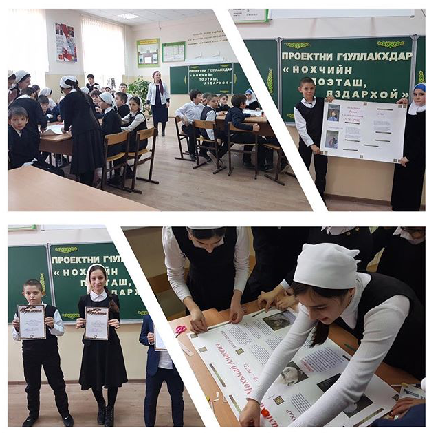 20.12.2017В МБОУ "СОШ3 с Алхан - Кала" 20.12.17г. было проведено среди учащихся 5-8 классов мероприятие , "Проектни г1уллакхдар "Нохчийн поэташ ,яздархой", посвященное Дню рождения чеченского поэта, писателя Мамакаева Магомеда и чеченской поэтессы Ахматовой Раисы.