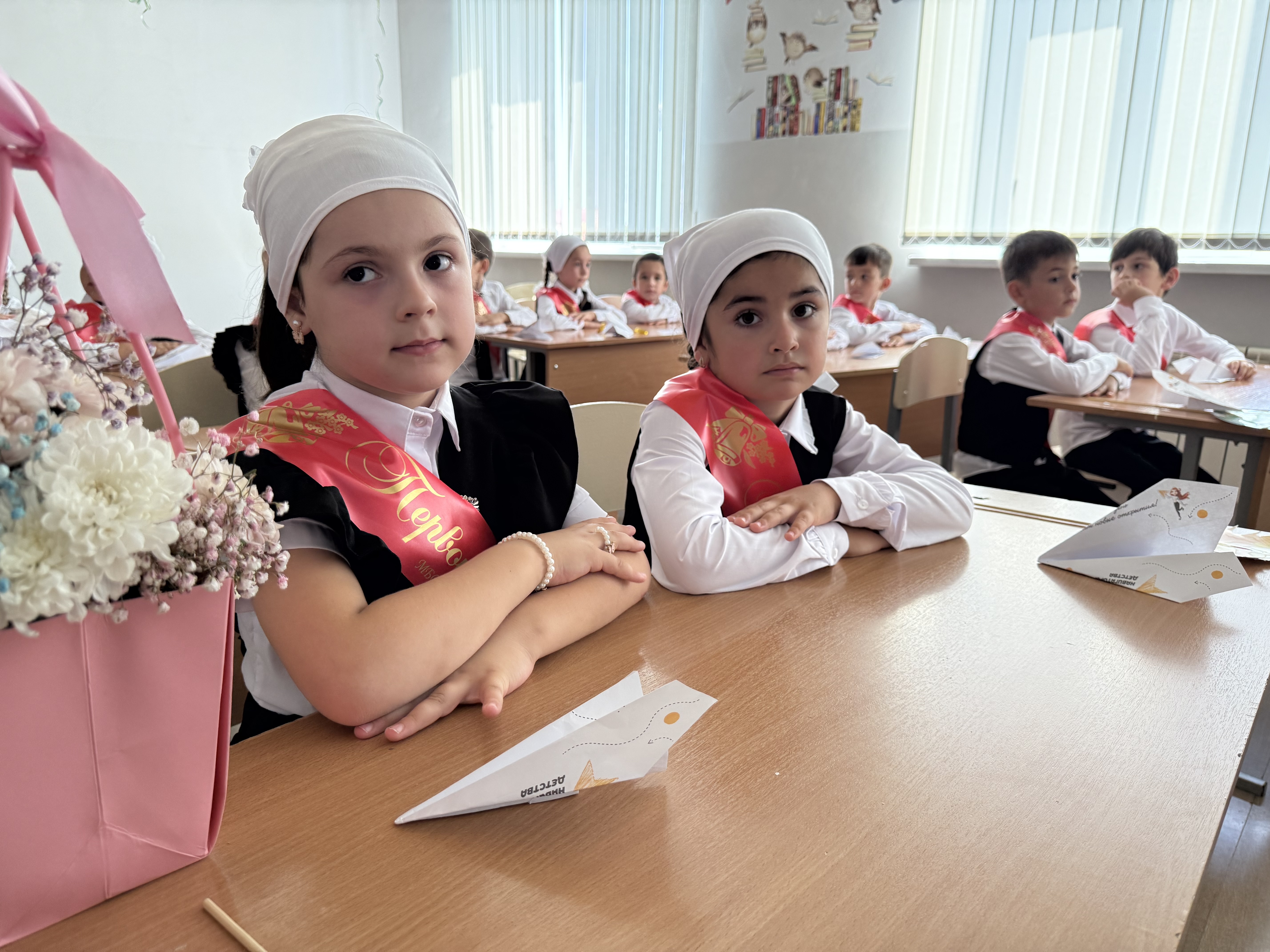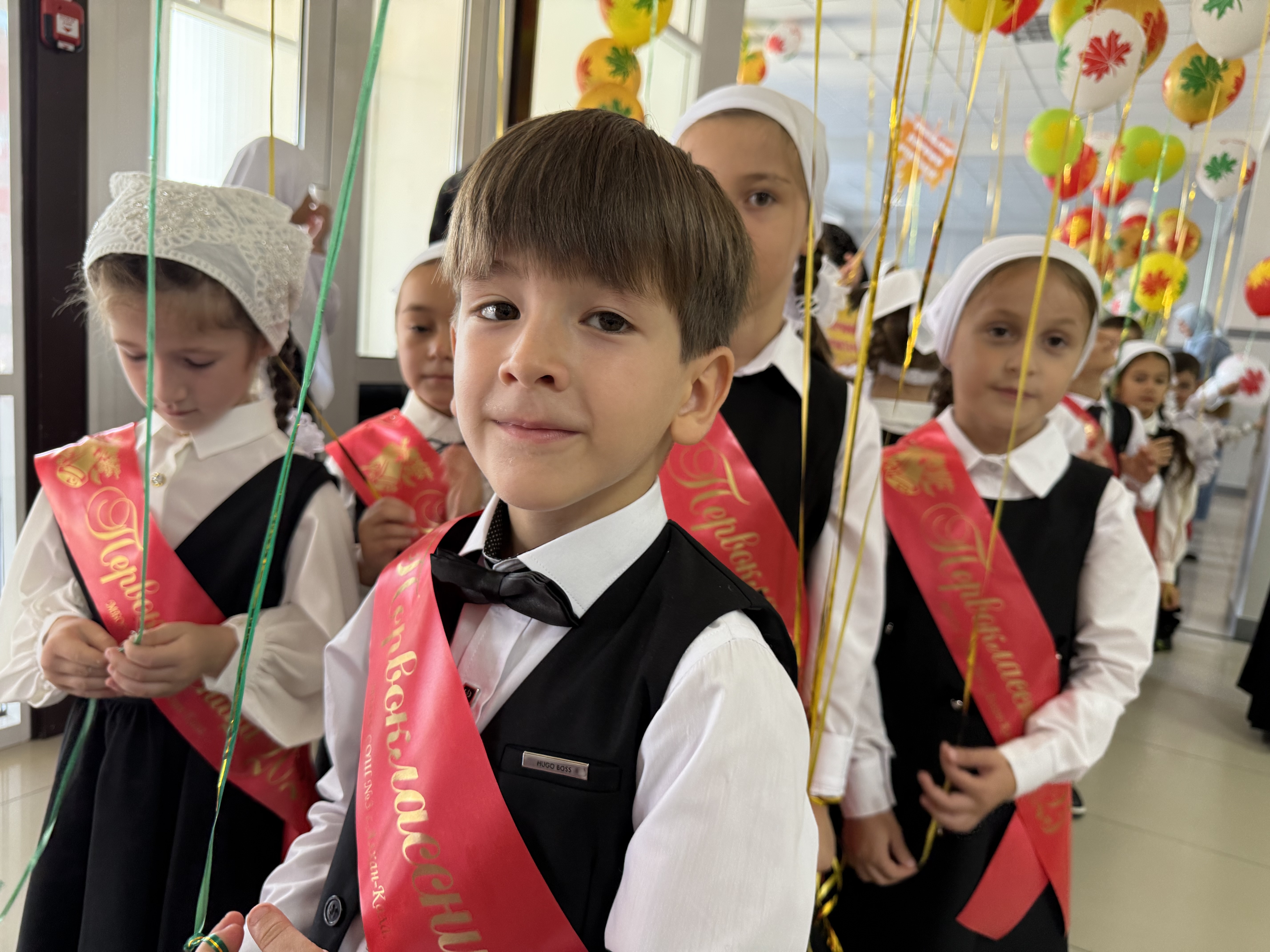 Нарядные ученики и ученицы с пестрыми букетами цветов, учителя и родители заполнили школьный двор. Звучит музыка, и все классы строятся на школьном дворе. Всё наполнено торжеством и гордостью, что ты частичка этого действа, этого великого праздника Дня Знаний. Ведь знание каждого из нас - это будущее каждого из нас, это будущее страны. Торжественная линейка объявляется открытой. По традиции первыми представляют малышей-первоклассников, их в этом году 76 . Директор школы Шапова Лида Саитхасановна и гости поздравили учащихся школы с новым учебным годом, отметив, что учение - нелегкий, но радостный и увлекательный труд.