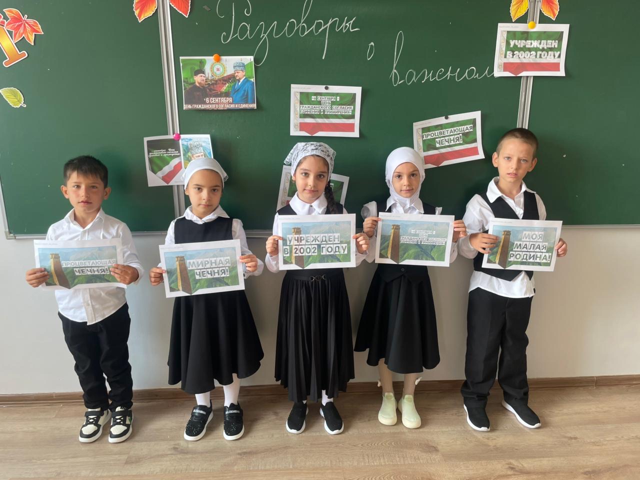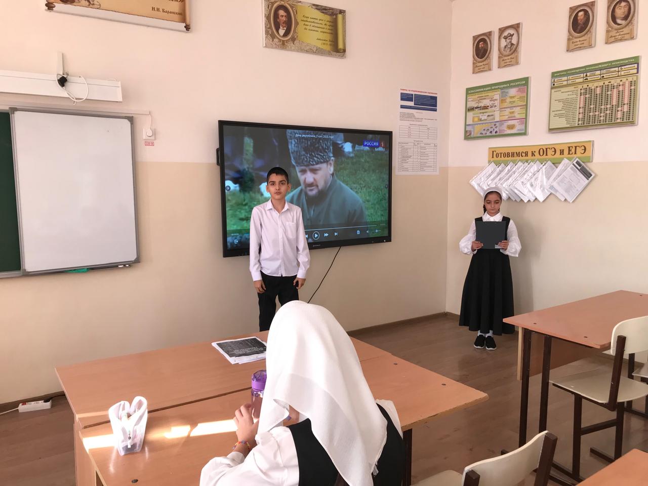 » началась с торжественной церемонии поднятия государственных флагов Российской Федерации и Чеченской Республики. После прошли внеурочные занятия