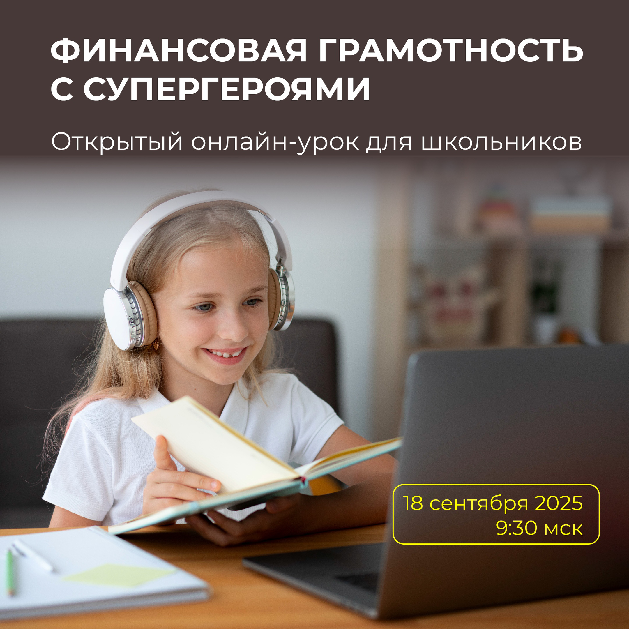 18.09.202518 сентября Банк России запускает осеннюю сессию онлайн-уроков по финансовой грамотности для школьников. В этом году они проходят в формате игровой вселенной Города Финансов: ученики станут помощниками «финансовых супергероев» — экспертов по цифровой безопасности, истории денег, инвестициям и другим темам.Первый урок — 18 сентября в 9:30 мск. Его проведет руководитель Службы Банка России по защите прав потребителей Михаил Мамута.Смотреть трансляцию можно:— на сайте проекта: clck.ru/3P9YmY— во «ВКонтакте»: clck.ru/Wx5QZВ этом году проект отмечает 10-летие. Осенняя сессия продлится до 17 декабря: около 800 эфиров по 29 темам — от личного бюджета и защиты от мошенников до первых шагов в мире инвестиций. Расписание адаптировано под все регионы страны.