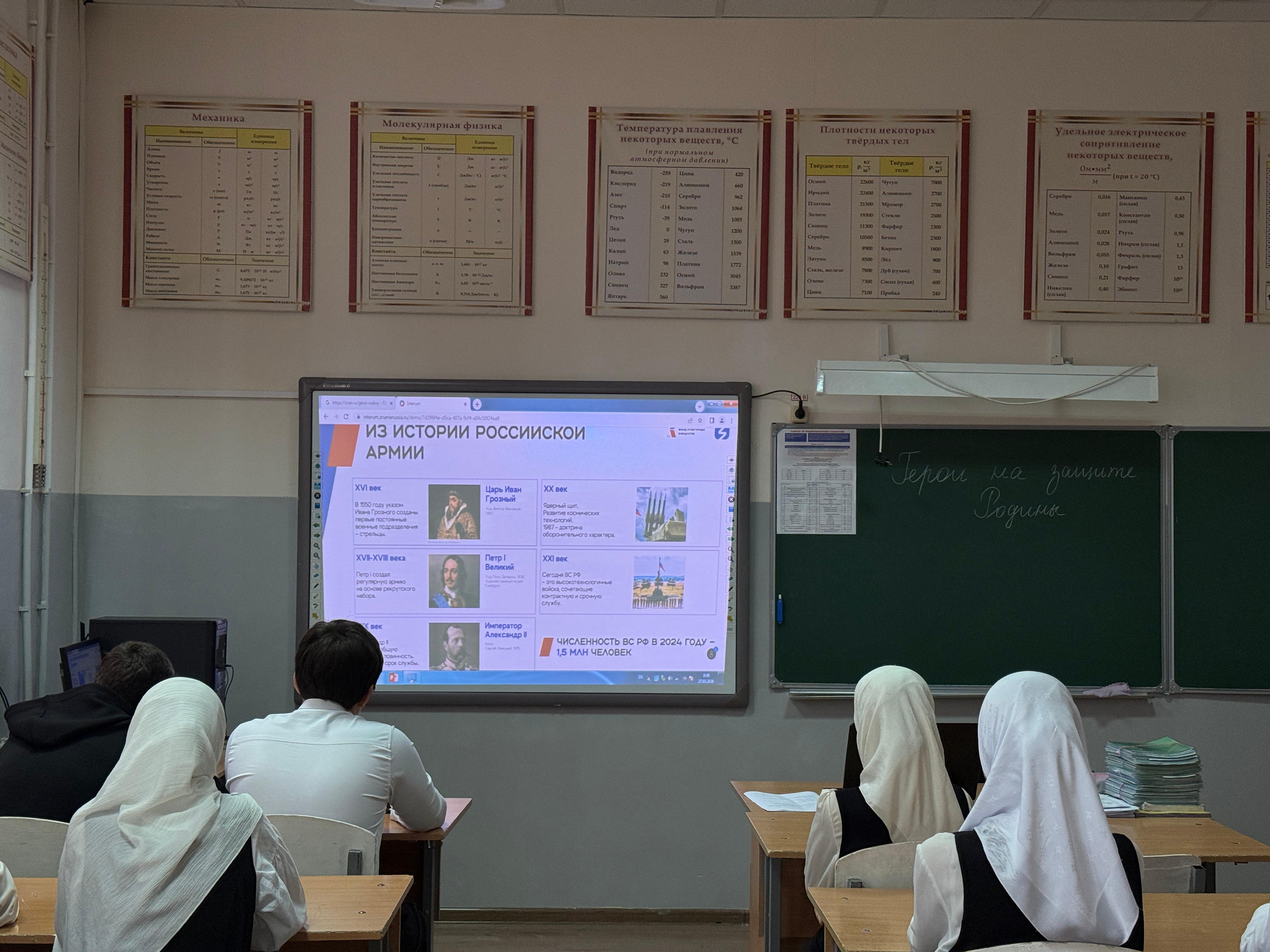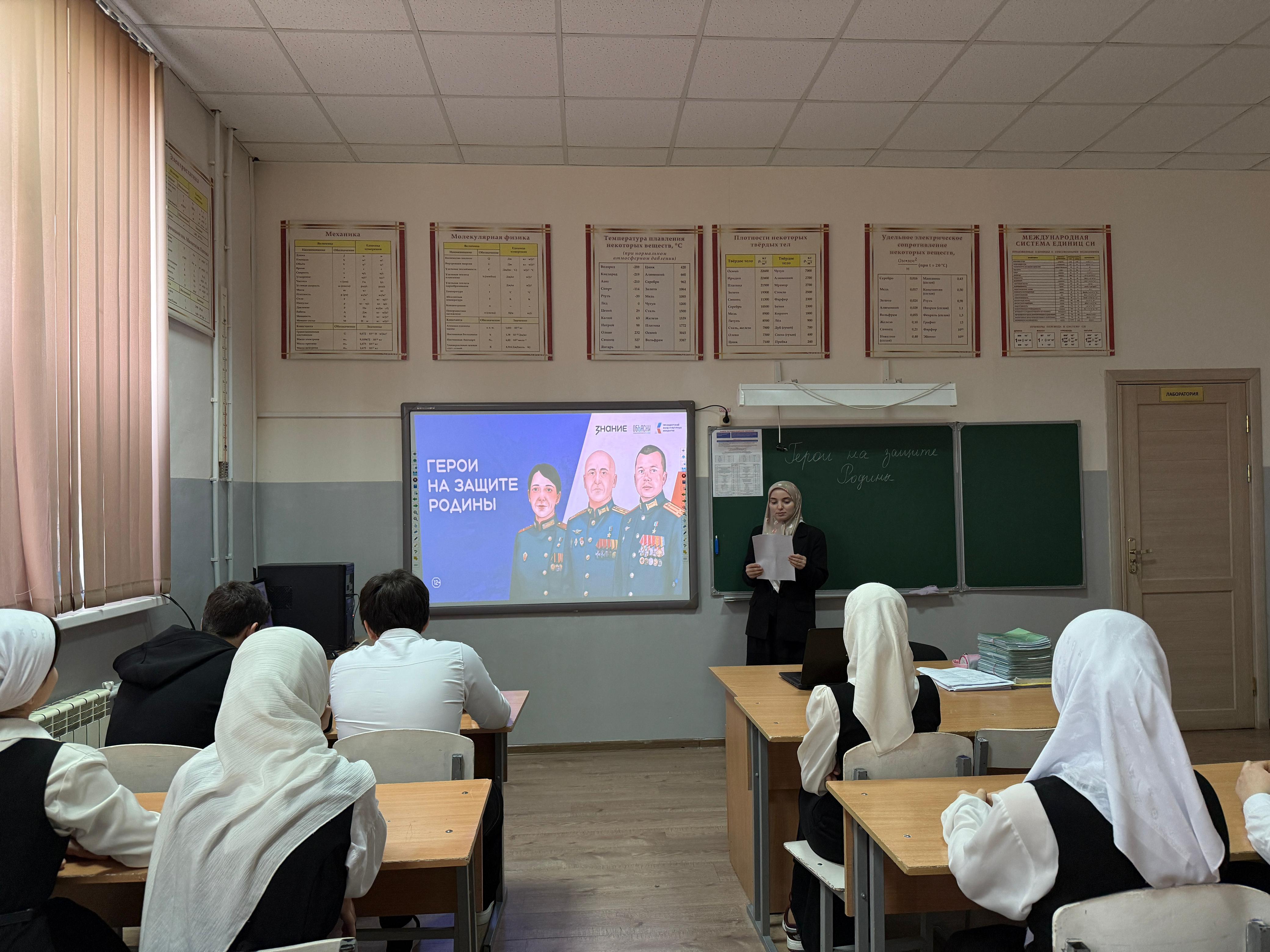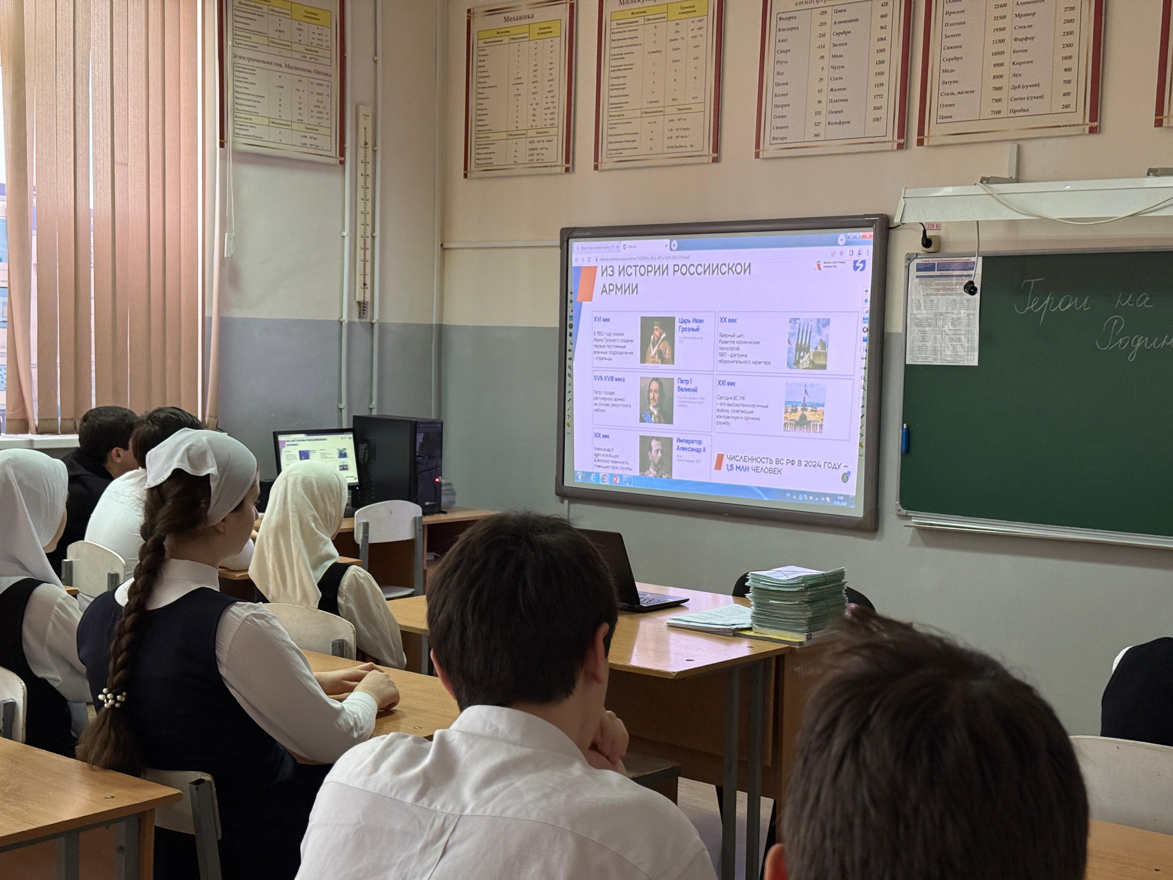 в МБОУ "СОШ № 3 с.Алхан-Кала Грозненского муниципального района" для учащихся 5-9 классов прошла мастер‑лекция «Герои на защите Родины».