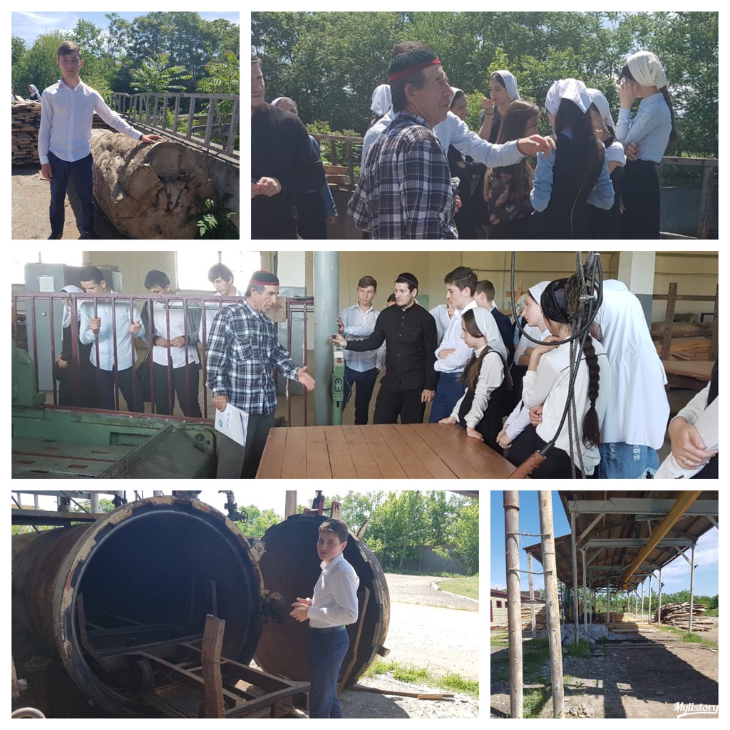 посетили ГУП «Алхан-Калинский деревообрабатывающий комбинат». В рамках посещения комбината школьникам рассказали об истории предприятия, особенностях производственного процесса, показали производство, станки, рассказали и показали, как специалисты работают в данной среде.