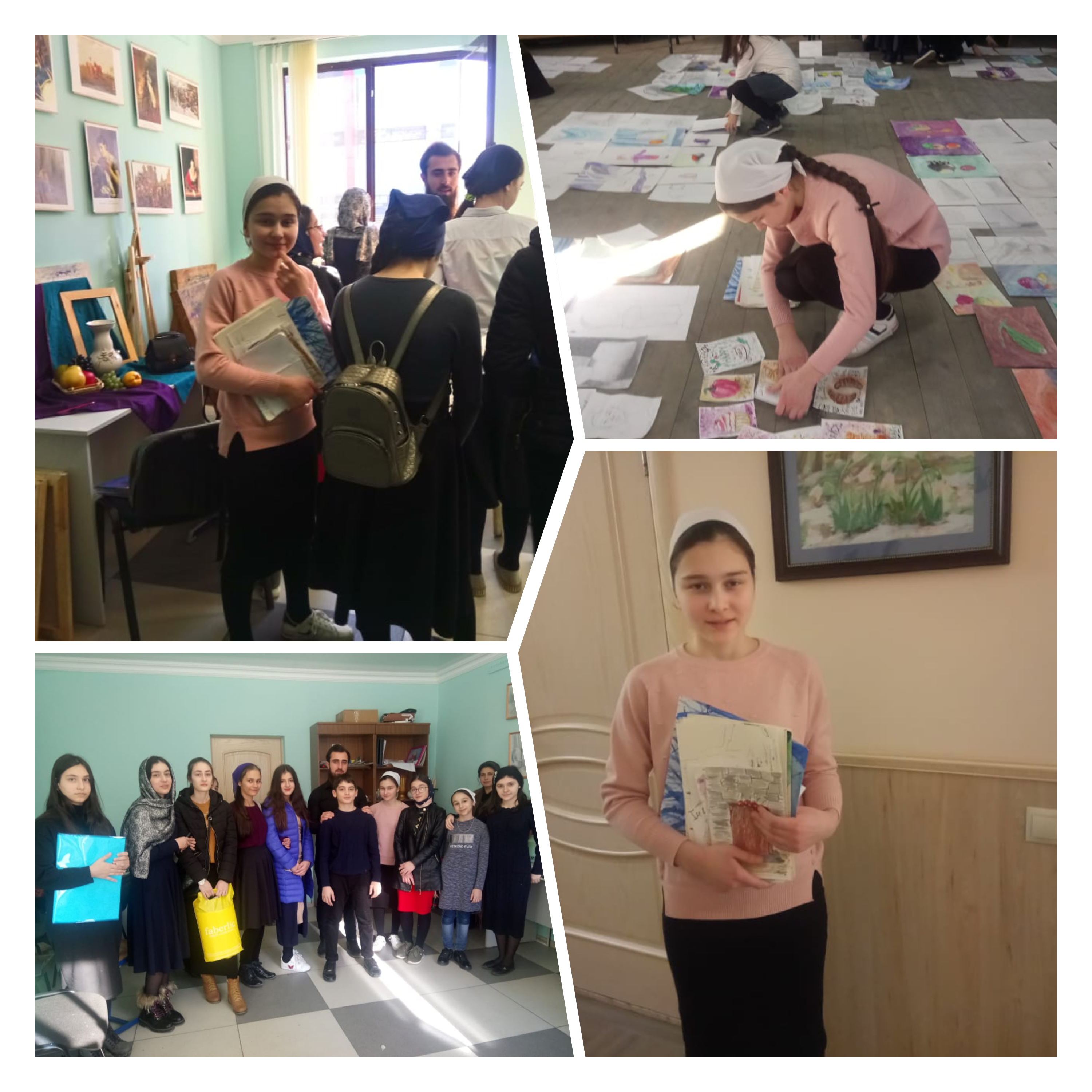Наиболее успешные работы были отобраны и вывешены в стенах школы. Техника исполнения работ: гуашь и акварель .На этой выставке были отмечены работы ученицы 8 а класса МБОУ «СОШ 3 с. Алхан-Кала»Магомадовой Марем. Она получила пятерки во всех номинациях. Марем, мы гордимся тобой! Дала аьтто