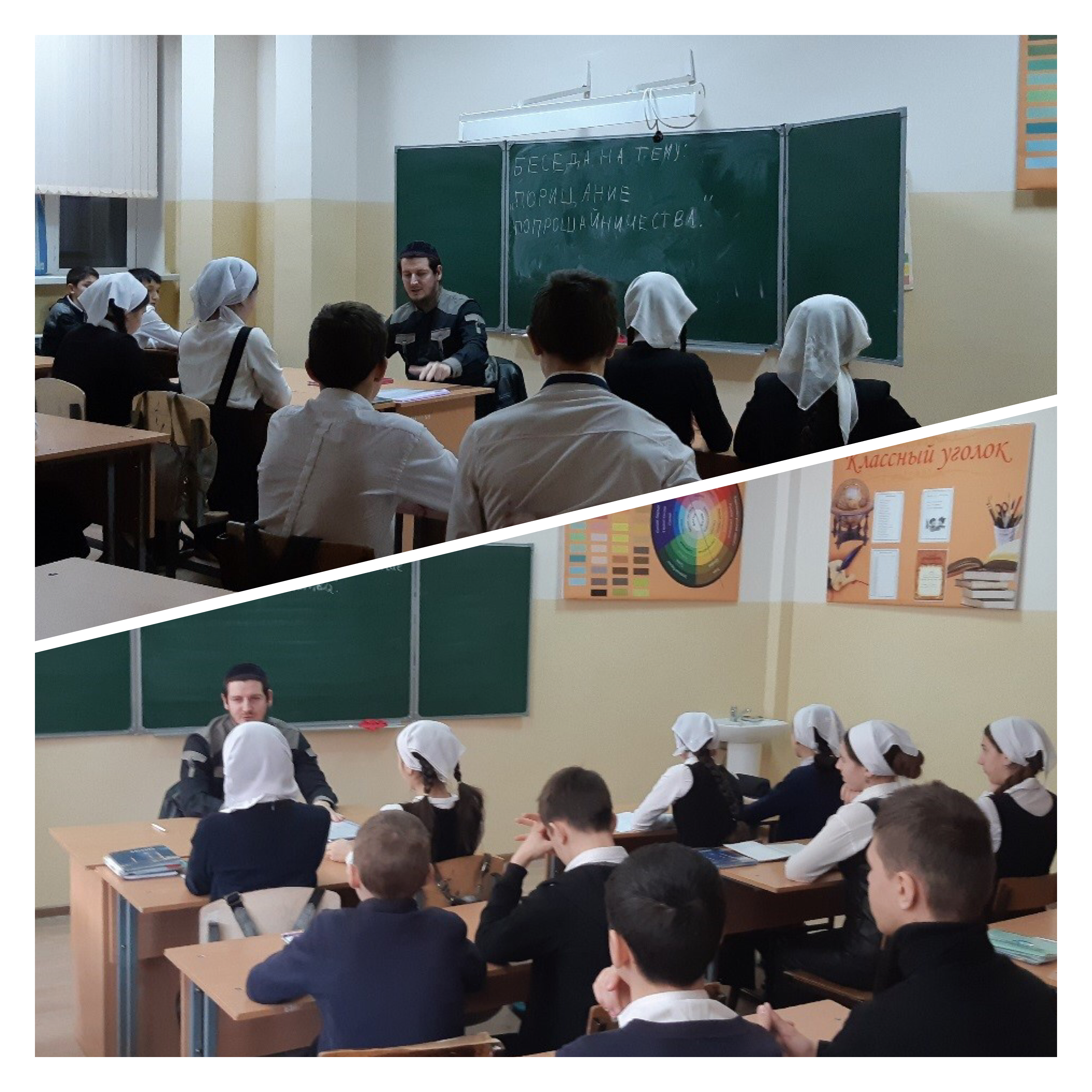 19.01.2019Во исполнение Протокольного поручения Главы Чеченской Республики Р.А. Кадырова 01-18 от 01.08.2017 года, в рамках реализации Единой Концепции духовно-нравственного воспитания на I квартал 2019 года в МБОУ «СОШ №3 с. Алхан-Кала Грозненского муниципального района ЧР имени Сатиной Е.П.» прошла беседа на тему «Порицание попрошайничества»
