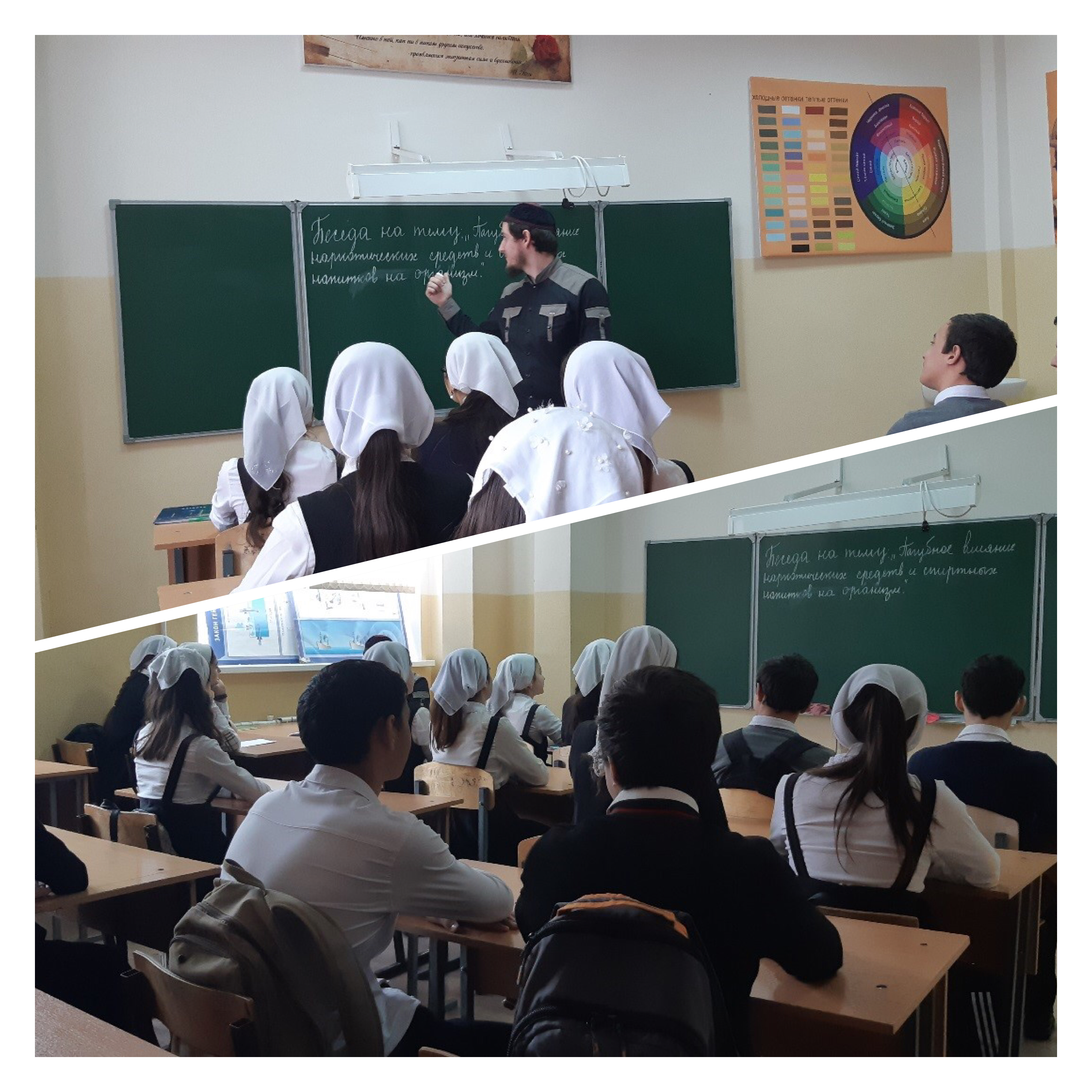 В целях единой концепции по духовно-нравственному воспитанию в МБОУ «СОШ №3 с. Алхан-Кала Грозненского муниципального района ЧР имени Сатиной Е.П." прошла беседа на тему: «Влияние наркотических средств и спиртных напитков». Беседу провел педагог по ДНВ Абдулаев И.В.Педагог по ДНВ сказал: «Борьба с наркоманией - это обязанность мусульманина. Употребление наркотика является большим грехом, более сильным чем распитие спиртного. Это объясняется тем, что наркотики сильнее действуют на разум человека. Разум дан, чтобы познавать Всевышнего, помнить о Его законе, Коране. В нетрезвом виде человек не различает грех и праведность, он может забыть о Боге и законе, совершить грех, лишить себя вечного блаженства. Поэтому мусульмане считают, что наркологические зависимые приносят больной вред себе и обществу».