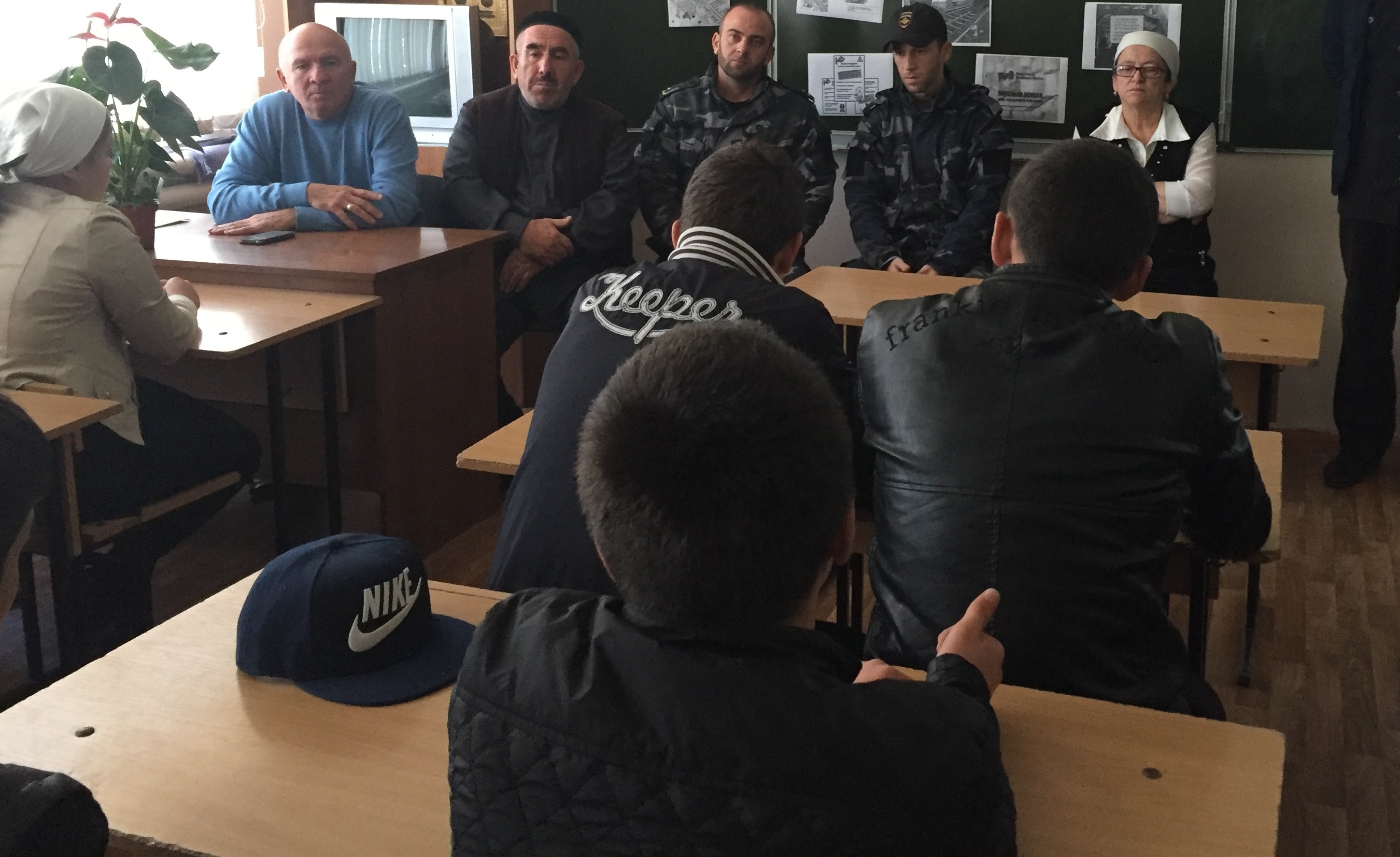 В мероприятии приняли участие: глава села Л. Алматов, совет старейшин села М. Ятаев, инспектора ПДН О. Исаев, и И. Магомадов. В беседе освещались вопросы об административной и уголовной ответственности несовершеннолетних за совершение преступлений и правонарушений, о коррупции, а также о правилах поведения детей. Учащиеся принимали активное участие в беседе, задавали много интересующих их вопросов, рассказывали о своих проблемах. Глава села в своем выступлении сказал, что Ваххабиты, которые никогда не стесняются обругать или оклеветать сподвижников и ученых мусульманской общины, то обвинить в неверии или убивать людей, из числа простых мусульман, для них простое дело. Хотя, разобравшись в их нелепых обвинениях и в том, как они наговаривают на простых людей, можно убедится, что те ученых, которых они называют "ваххабитами" и "террористами" никогда не призывали мусульман к актам насилия. А даже совсем наоборот, призывали людей к справедливости и правдивости, как к мусульманам, так и к людям, исповедующим другие религии. Но, к сожалению, мало знающие люди которых запугали ваххабиты своими мифами, верят им так как все мусульмане, которые не придерживаются их точки зрения являются "заблудшими" и "неверными" и нельзя ни с кем разговаривать и общаться кроме их "имамов", нельзя читать ничего кроме "их книг" (даже Коран) так, как только они "несут чистый Ислам".Говоря о мерах по противодействию таким социально-негативным явлениям, как терроризм и ваххабизм, инспектор ПДН отметил, что поступки, совершаемые членами незаконных вооруженных формирований, противоречат не только нормам ислама, но и чеченским адатам, обычаям и традициям. Цель этих деяний – сделать религию ислам врагом цивилизованного мира. Поэтому общество твердо и единогласно должно дать отпор этому злу, сказал инспектор ПДН О. Исаев. Совет старейшин М. Ятаев подчеркнул что террористы, ваххабисты и экстремисты – это те люди, которые бросили наш народ в огонь войны. Именно из-за этих людей погибли тысячи наших братьев и сестер. В настоящее время экстремизм и терроризм являются реальной угрозой национальной безопасности РФ. Одним из ключевых направлений борьбы с экстремистскими и террористическими проявлениями в общественной среде выступает их профилактика.Для обеспечения безопасности жизни учащихся, в школе были проведены мероприятия, направленные на информационное противодействие терроризму и экстремизму.