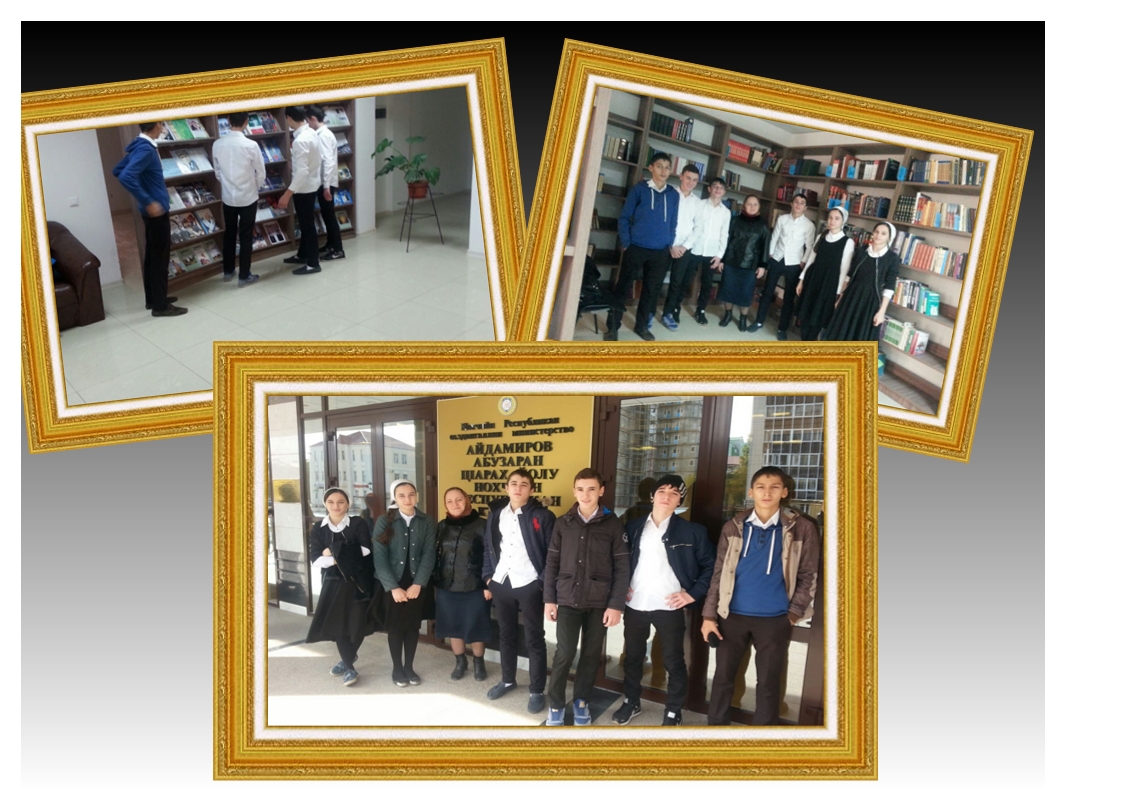 24.10.2015Учащиеся 9 а класса вместе со своим классным руководителем Джунаговой М. В. посетили национальную библиотеку города Грозного. Здание Национальной библиотеки расположено в центре города.